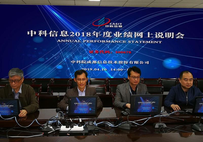 4月10日下午14:00-16:00,中科院成都信息技術(shù)股份有限公司在全景網(wǎng)路演天下平臺(tái)舉行2018年度業(yè)績(jī)網(wǎng)上說(shuō)明會(huì)。公司總經(jīng)理付忠良、副總經(jīng)理、董事會(huì)秘書(shū)尹邦明、財(cái)務(wù)總監(jiān)劉小兵、獨(dú)立董事黃澤永、保薦代表人國(guó)信證券投行部執(zhí)行總經(jīng)理譚杰倫擔(dān)任會(huì)議嘉賓與投資者在線互動(dòng)。