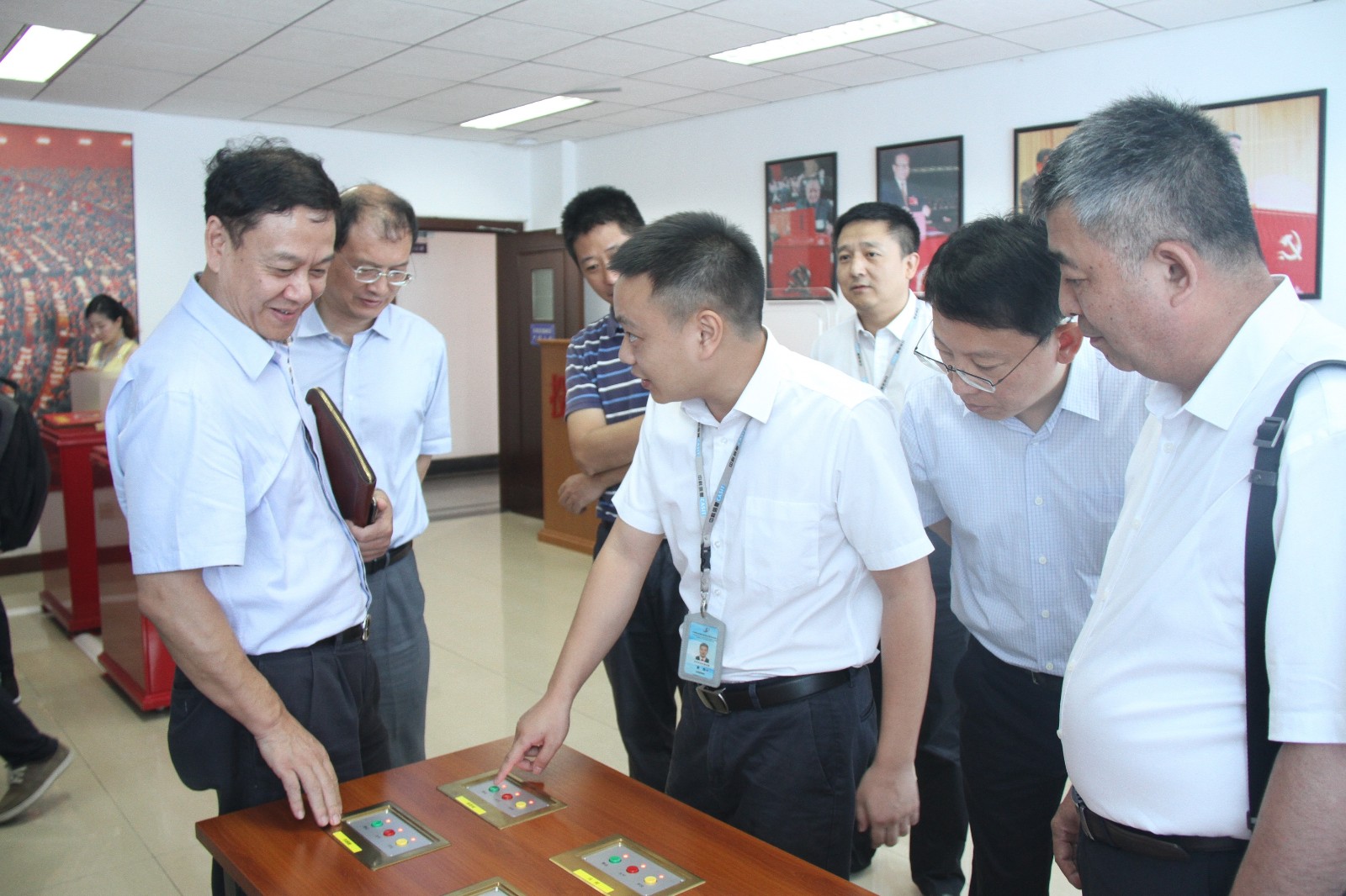 在中科信息數(shù)字會議系統(tǒng)展廳,鄧勇副秘書長參觀了為歷屆黨代會和全國“兩會”會議選舉服務的電子票箱、人民大會堂使用的電子表決器、面向國內(nèi)基層選舉市場研發(fā)的新產(chǎn)品—計票通設備和海外電子選舉系統(tǒng)設備,并了解了中科信息數(shù)字會議系統(tǒng)研發(fā)歷程,以及新型電子選舉系統(tǒng)和電子表決系統(tǒng)在黨的“十九大”和十三屆全國“兩會”上的使用情況。